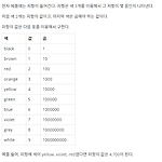 BAEKJOON ONLINE JUDGE 1076번 저항 123456789101112131415161718192021222324252627282930313233343536#include #include #include char resister[10][7] = { "black", "brown", "red", "orange", "yellow", "green", "blue", "violet", "grey", "white" }; int numberofColor(char r[7]) { int index; for (index = 0; index