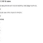dovelet 9단계 재귀 이진수로 바꾸기 (tobin) http://59.23.113.171/30stair/tobin/tobin.php?pname=tobin 1234567891011121314151617181920#include void tobin(int n){ if (n > 1) tobin(n / 2); printf("%d", n % 2);} int main(void){ int n; scanf("%d", &n); tobin(n); printf("\n"); return 0;}cs tobin 함수 안에 printf를 재귀 호출 위에 있으면 10일 때 0101 이 출력되고재귀 호출 다음에 있으면 10일 때 1010이 출력재귀가 끝나야 출력되니까 맨 처음 계산한 값이 맨 마지막에 출력된다이거를 잘 이해하고 ..